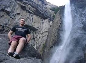 Ingo ist da bei seinen großen Füßen wirklich im Vorteil, das Gewicht wird besser verteilt; er geht nicht so schnell unter, kriegt aber schneller nasse Füße, hihi. Der Glacier Point war aber auch nen Hammer, so eine geniale Aussicht hat man selten, dazu eine super Weitsicht auf die Gletscher, die Wasserfälle und das Valley. Im Tal war gerade ein kleines Feuer, was man aus dieser Höhe gut sehen, aber auch noch riechen konnte – kontrolliertes Feuer soll das gewesen sein. Na, wenn die meinen, okay. Etwas ähnliches hatten wir gestern auch schon einmal. Schnell mit geschlossenen Fenster dran vorbei und gut, hust…