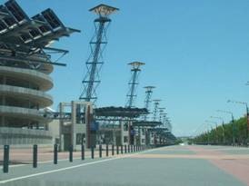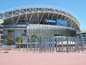 Auf dem Weg dorthin sind wir am Olympia-Zentrum vorbei gekommen, welches im Jahr 2000 der Austragungsort der Olympischen Spiele war. Das Gelände war riesig im Vergleich zu dem in München. Ein komplettes Straßennetz hat die wesentlichen Punkte miteinander verbunden. Zuerst sind wir am Super-Dome vorbei gefahren, danach am Stadium angehalten. Beim Aussteigen haben wir dann gemerkt, dass die Klima-Anlage im Auto sehr gut funktioniert. Es mussten draußen so ca. 40 Grad gewesen sein. Die Hitze traf uns wie ein Hammer. Nicht, dass wir uns am Vortrag in Sydney nicht verbrannt hätten oder so, aber hier gab uns die Sonne noch einmal den Rest. Wir sind mehr oder weniger von einem Schattenplatz in den nächsten, zumindest haben wir das versucht. Leider gab es nicht so viele Schattenplätze dort. Also haben wir ein paar Fotos gemacht und sind wieder in das Auto, um nach Katoomba mitten in den Blue Mountains weiter zu fahren.