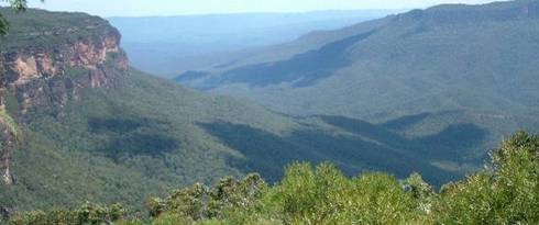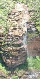 Am Echo Point entdeckten wir dann ein Schild zu den Katoomba Falls mit dem Hinweis, dass wir innerhalb von 10 Minuten dort sein könnten. Wir dachten uns, dass dies noch eine Bereicherung dieses Sights sei und entschlossen uns dazu, dort hin zu wandern. Außerdem waren wir ja schon vom ersten Wasserfall mehr als begeistert gewesen. Also sind wie die 10 Minuten gegangen und haben eine Aussichtsplattform gesehen, von der wir zwar einen wundervollen Blick auf die Blue Mountains hatten, jedoch nicht auf einen Wasserfall.