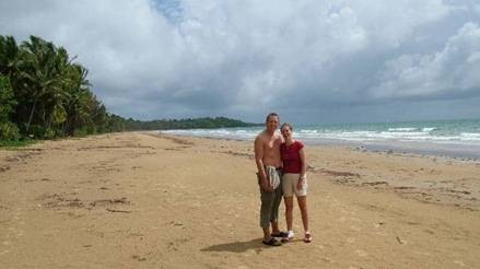 Also sind wir an den Strand und haben uns hiervon begeistern lassen. Ein traumhaft schöner Strand lag vor uns, mitten in den Tropen. Wir haben einen netten Herren (Brite oder so) getroffen, der fast perfekt Deutsch sprach, denn er war zwei Jahre in Gütersloh stationiert (er hat auch das Foto aufgenommen).