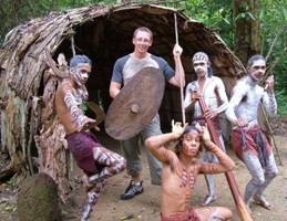 Als wir dann aber bei der Schau waren, fand ich es mal echt beeindruckend. Sie haben uns drei Tänze gezeigt, die irgendwelche Dämonen verscheuchen sollten oder so – nicht schlecht sage ich da. Zum Schluss durfte ich mich dann sogar noch mit der Truppe von Tänzern fotografieren lassen. Dabei war ich der Warrior (also der Jäger), der gerade ein Wallaby erlegt hat (oder so). Aber echt nett die Truppe! Sie sprachen perfektes Englisch, waren well-educated und wollten uns nicht essen, cool was J