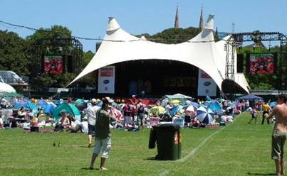 Danach sind wir dann ein wenig spazieren gegangen, um dieses doch eher heftige Frühstück zu verdauen. Dabei sind wir dann durch „The Domain“ gegangen, einem riesigen Park südlich vom „Royal Botanic Garden“. Dort konnten wir eine Horde von Leuten erkennen, die dort alle zwischen Zelten zu sitzen schienen. Ein wenig später, nachdem wir auch Weihnachts-Musik (bei ca. 30 Grad) hören konnten, stellten wir fest, dass auch eine Riesen-Bühne aufgebaut war. Die netten Security-Guards haben uns dann erklärt, dass dies ein Charity-Event sei und gegen Abend von 18.00h bis 21.30h ein Konzert stattfinden würde. Wir sind dazu sehr herzlich eingeladen – free entry! Da wir jedoch vor hatten, nach Manley zu fahren, ist dies nicht weiter in unsere Planung eingegangen.