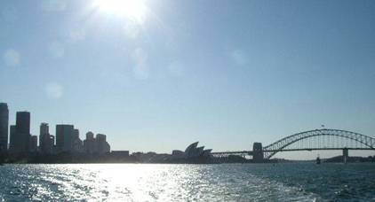 Das Schiff ist wie geplant ausgelaufen und wir mussten uns das Deck achtern mit vielen Leuten teilen, hatten jedoch eine Bank für uns alleine. Es war schon ein wenig später am Tag und die Sonne war im Begriff, innerhalb der nächsten Stunden unter zu gehen. So entstanden traumhafte Blicke auf Downtown, die Oper und die Harbour Bridge.
