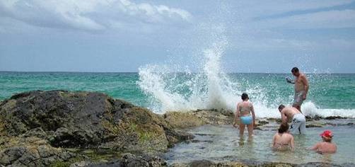An den Pools hatten wir ca. eine Stunde Zeit, um uns ein wenig zu erholen. Die meisten von uns haben es genutzt, um etwas nördlich von den Pools im Meer schwimmen zu gehen. Echt genial, kann ich nur sagen. Die Wellen waren doch größer, als gedacht, also konnten wir ein wenig Wellenreiten (ohne Board). Das hat mal echt Spaß gemacht. Bis auf diese eine Welle, wo ich etwas zu schnell geschwommen bin und die mich denn in der Mitte, auf Hüft-Höhe fast durchgebrochen hätte. Ich bin dabei insgesamt 2 Mal auf dem Meeresboden aufgeschlagen und war danach ein wenig durcheinander. Aber wenn Du vom Pferd gefallen bis, sollst Du ja auch wieder aufsteigen – also ging es wieder hinaus, bis es hieß „Die perfekte Welle…“