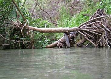 Wir haben jedoch beide Hinweise von Pete befolgt, haben uns eingecremt und sind den Fluss hinauf gewandert. Was uns teilweise vor fast unüberwindbare Hindernisse stellte. Denn wir haben uns nicht extra umgezogen und die Schwimmsachen im Bus gelassen. Folglich hatten wir an einigen Stellen die Probleme, gewissen Untiefen zum einen nicht einschätzen zu können, zum anderen nur sehr schwer überwinden zu können. Also haben wir uns die Hosen rauf gekrempelt und mal einfach gehofft, dass er Fluss nicht zu tief war. Ich muss sagen, an so manchen Stellen hatte ich einfach nur Glück, dass ich plötzlich nicht zwei Badehosen hatte J Puhh, das war manchmal echt knapp, und wir konnten uns ja nicht mehr umziehen, da unsere Sachen vermutlich schon auf dem Festland waren.