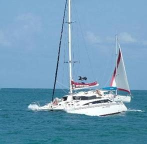 Wir haben Kurs auf eine kleine Bucht nördlich von der großen Whitsunday Island genommen, um dort noch einmal schnorcheln zu gehen. Die Überfahrt war ein wenig ungemütlicher, aber hier sind wir ja mit dem Wind und mit den Wellen gefahren. Das ging also noch. Ein entgegenkommendes Boot hatte jedoch ein wenig mehr mit den Wellen zu kämpfen, als wir gerade. Das Problem dabei war nur, dass wir ja auch noch zurück mussten…
