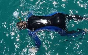 Nach guten zwei Stunden Überfahrt sind wir dann in der Bucht angekommen, zu unserem einzigen Stopp heute. In der Bucht herrschte trotzdem eine starke Strömung, aber unser Skipper hat uns mit dem Tender-Boot ein wenig Strom aufwärts gefahren, damit wir uns einfach nur herab treiben lassen konnten. Zuvor mussten wir jedoch wieder in unsere sexy Stinger-Suits schlüpfen, damit wir von keinen fiesen Tieren gebissen, gestochen oder gestreift werden konnten (bzw. wir dadurch keine tödlichen Schmerzen erfahren mussten).