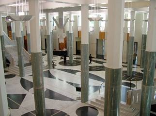 Im Parlament angekommen, waren wir erst einmal begeistert von der Architektur und dem Ambiente, in dem die Regierung von Australien arbeitet. Echt schön – alles mit Marmor verziert, Parkett auf dem Fußboden (alles gebohnert, dass es glänzte). Wundervolle Blicke über die Straßen der Stadt! Wir haben dann eine Self-Guided (selbst-geführte) Tour durch das Parlament gemacht, um uns nicht irgendeiner Gruppe anschließen zu müssen.