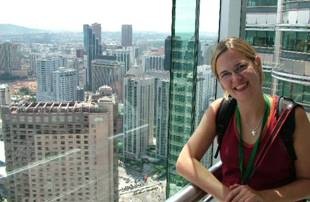 getroffen und ein wenig geplaudert. Irgendwann haben wir dann einen fahrbaren Untersatz incl. Fahrer gefunden und sind zum KL Tower gefahren. Mittlerweile war es ja auch schon Spätnachmittag und wir hatten uns ja am Tag zuvor ganz schlau überlegt, so auf den Turm zu fahren, dass wir sowohl Kuala Lumpur bei Tag als auch bei Nacht (also Dämmerung) bestaunen können. Und da es ja in KL innerhalb von einer Stunde dunkel wird, ist das kein Problem…. Wir konnten also herrliche Tag- und Nachtfotos von der Stadt der Lichter – so wird KL genannt – machen und dabei mit unseren Kopfhörern viel über die Stadt und ihre Geschichte erfahren….