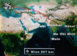 Einchecken zu keinen Problemen kam… Und als wir dann in der Security-Kontrolle warteten, kam das Bordpersonal und zu unserem Erstaunen waren es genau die Kollegen, die vor 2 Tagen mit uns von Sydney nach KL geflogen sind. Die haben wohl auch 2 nette (Shopping-) Tage in Malaysia verbracht. Der eine Stewart hat uns auch beim Aussteigen in Wien irgendwie wieder erkannt…. Tja, woran das wohl lag? An meiner Schönheit oder an Ingos unverkennbarem Charme?