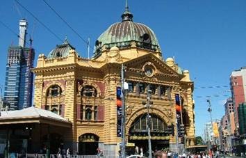 der Brücke dort hatten wir einen tollen Blick auf Southgate – eine Promenade am Ufer mit vielen kleinen, teuren Restaurants. Dann haben wir noch die Flinders Street Station gesehen, eine der größten Tram und Bahnstationen. Ein schönes altes Gebäude. Zwischendurch sind uns viele der internationalen Sportler der Deaf Olympics, die hier in Melbourne zur Zeit stattfinden, entgegen gekommen. Ingo meinte nur, er hätte gern mit denen gesprochen, aber wir können ja die Blinden- bzw. Taubstummensprache nicht. Schade…..