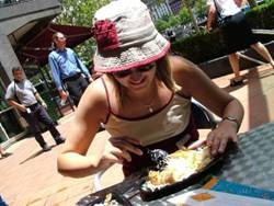wir uns entschlossen, erstmal zum Port von Melbourne und damit zu St. Kilda zu fahren, ein Stück Strand und Esplanade in Melbourne. Davor musste ich aber etwas essen, da ich schon wieder so einen Hunger hatte. An der Southgate haben wir viele kleine Restaurants gesehen, deshalb sind wir wieder da hin gegangen. In so einem Foodcourt sind wir dann auch schnell fündig geworden: Backed Spud – Folienkartoffeln J Hhhhm, und die waren lecker. Ich hab sogar noch einen Teil von Ingos Kartoffel essen müssen, weil ich so begeistert war und Ingo mir und meinem bettelndem Hundeblick nicht widerstehen konnte…