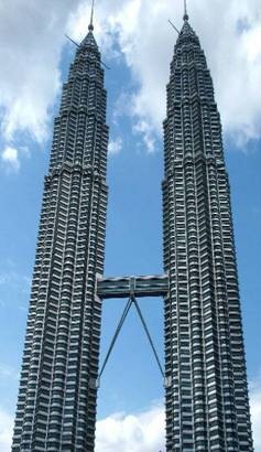 Die Petronas Towers weisen außer Bürogebäude auch eine 4stöckige Mall auf, die wir ebenfalls inspiziert haben. Aber ohne etwas zu kaufen. Als wir uns dann zu dem Aussichtspunkt der Twin Towers durchgefragt hatten, mussten wir feststellen, dass die nur eine limitierte Anzahl von Leuten jeden Tag auf diese Aussichtsbrücke lassen, die die beiden Türme verbindet. Naja, und um 14h Nachmittags hat man da keine Chance mehr. War ja klar, oder?