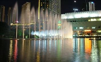 Aber das hat sich gelohnt. Die Petronas Towers sehen bei Nacht echt toll aus. Dazu kommt, dass in diesem Park hinter den Towers und dem Shoppingcenter die Springbrunnen und Fontänen eingeschaltet waren und das alles echt toll aussah. Wir haben uns dann kurz hingesetzt, Ingo hat Fotos gemacht und ich mich von Mücken stechen lassen. Tolle Arbeitsteilung, sag ich da nur.