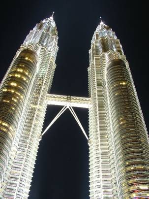 Da wir noch kein Bargeld bei uns hatten, haben wir dann erstmal einen Geldautomaten gesucht und bei der Alliance Bank gefunden. Wir haben 500 Malaysische Ringit abgehoben, ca. € 100. Das soll reichen. Wir sind dann erstmal wieder an unserem Hotel vorbeigegangen (was ein Zufall) und haben dann die Petronas Towers als neues Ziel festgehalten. Sehen konnten wir sie ja von weitem, jetzt mussten wir nur einen Weg finden, der uns auch dahin führt. Das mit den Fußgängerwegen ist hier in KL noch nicht so ausgebaut wie in Deutschland, irgendwie kann man wohl einfach über die Straße gehen, wenn kein Auto kommt bzw. man muss an der Straße entlang gehen, wenn es keinen Bürgersteig gibt… Aber darauf waren wir vorbereitet, denn das stand im Lonely Planet….