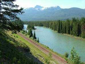 Nach dem günstigen aber voluminösen Essen tat der Spaziergang durch die Stadt sehr gut. Wir waren begeistert. Der Stiel von diesem Ort ähnelte einem alten Cowboy-Örtchen, wie man es aus dem Fernsehen kennt. Zumindest wurde sehr darauf geachtet, diesen Stiel beizubehalten. Nach einem kurzen Walk sind wir dann am Bow River angekommen, der auch durch den Ort Banff fließt. Dort gab es Telefone und wir haben erst einmal zu Hause angerufen. Dabei haben wir erfahren, dass Deutschland die Schweden mit 2:0 weg geputzt hat und in München die Leopold Str. mit 300.000 Leuten Kopf steht! Einen kurzen Moment lang tat es uns leid, dass wir nicht dort sein konnten – denn die Str. liegt ja direkt vor unserer Haustür. Aber ein oder zwei Blicke später in die Rocky Mountains war dieser Gedanke auch schon wieder vergessen, denn wenn wir wieder daheim sind, können wir Live das Halbfinale in München mitbekommen und anschließend erleben, wie Deutschland im Finale spielt J