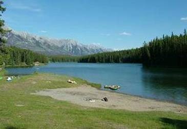 Wir sind den Fluss noch ein wenig entlang geschlendert und danach weiter in Richtung Auto. Auf dem Weg dorthin lag noch das Whyte Muesum of the Rocky Mountains. Dort sind wir kurz hinein und ich habe mir den Unterschied zwischen einem Squirrel und einem Chipmonk erklären lassen. Prinzipiell ist alles das gleiche, die Squirrels sind größer und bei uns würde man die Viecher „Eichhörnchen“ nennen. Am Auto angekommen mussten wir diese erst einmal wieder von ca. 80 Grad (Celsius) auf angenehmere 50 Grad hinunterkühlen, bevor es weiter ging an den Lake Minewakka und den Johnston Lake.