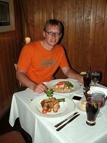 Ich glaube, „dinieren“ hat den Nagel genau auf den Kopf getroffen. Das war mit Abstand das nobelste Restaurant, in dem ich im letzten Jahr gegessen habe. Dementsprechend waren auch die Preise – dafür aber auch die Qualität! Sabrina hat sich für ein Applcursted Pork Tenderloin Steak entschieden und ich mich für ein Peppersauce Pacific Salamon. Seeeeehr lecker muss ich sagen. Der pazifische Lachs soll trockener und intensiver sein als der atlantische – vom trockenen habe ich aber nicht viel geschmeckt. Das war einfach nur genial!