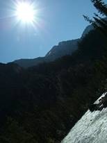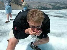 dieser Stelle 300m dick war. Wir sind den Empfehlungen unseres Busfahrers auch nachgekommen und haben von dem Wasser getrunken – ich hatte eh nen Brand wie ne Bergziege. Dabei ist mir fast der kleine rechte Finger abgefroren – verdammt ist Gletscherwasser kalt! Sabrina hat das auch probiert, und – was soll ich sagen – es hat zum Glück nicht geklappt mit den 10 Jahren, was soll ich auch mit einer halb so alten Freundin anfangen?!? Auf dem Weg zurück mussten wir dann wieder die 18%ige Steigung überwinden, die unser „Bus“ sehr gut gehandlet hat – dafür war er ja auch konstruiert!