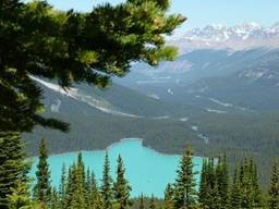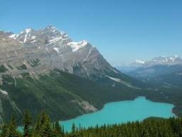 Ein wenig nördlich lag dann der Bow Pass (höchste Stelle auf dem Parkway) und der Peyto Lake. Ein unwirklich aussehender See, so blau schimmert das Wasser. Dort sind wir zunächst eine kleine Rundtour marschiert, die uns zum Fuß eines Berges führte. Irgendwie habe ich mich die ganze Zeit gewundert, wo denn die ganzen Leute aus den Bussen hin sind – hier waren sie anscheinend nicht. Nun gut – ich war schon ganz schön platt von den Wanderungen an den Vortagen, dennoch hab ich mir ein Herz gefasst und bin den Weg hinauf, um ggf. auf den See zu schauen. Aber irgendwie musste ich immer höher und höher, bis in die alpine Region, wo keine Bäume mehr wachsen (und dann noch 30m höher, um über diese hinweg zu schauen).