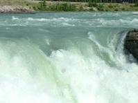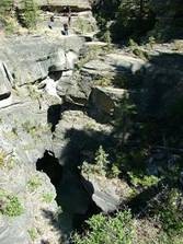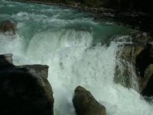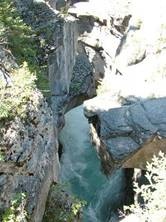 Ein wenig später kam auch schon der Mistaya Canyon. Ein wilder Fluss hat einen Canyon in die Rockys geschlagen, der fast schon unter der Oberfläche lag. Was wir sehen konnten waren Wasserfälle und der Beginn des Canyons, welcher sich durch den Stein fräste. Und das Wasser arbeitet immer weiter. Oberhalb der Wasserwälle ist der Fluss schon recht reißend, so dass viele kleine Steine mitgerissen werden, die den Canyon immer weiter prägen… Das sah schon alles sehr spektakulär aus!