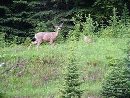 Auf unserer Fahrt hierher haben wir super viele Rehe gesehen. Die Straße von Kelowna bis kurz vor Nakusp führte doch viele Wälder und da standen die Rehe einfach so auf der Straße. Das hat die Fahrt etwas aufgeheitert, weil wir doch langsam aber sicher etwas genervt vom vielen Fahren waren. Außer Landschaft und einzelne Häuser haben wir ja vorher nicht wirklich viel gesehen… Und jetzt Rehe – wow!