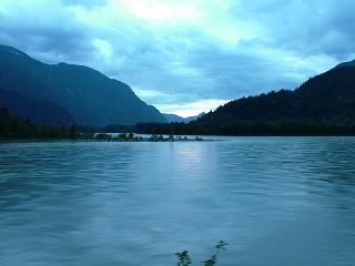 Richtung Hope auf, eine kleine Stadt ca. 2h Autofahrt von Vancouver entfernt. Da trafen wir auch irgendwann ein, haben schnell ein nettes Motel gefunden und auch ein sehr freundliches und gutes griechisches Restaurant (ich gestehe, auf Empfehlung von Artos….). Dort gab es für uns eine griechische Platte für 2, irgendein komisches Bier für Ingo, Sprite für mich und abschließend einen Ouzo, leider auf Zimmertemperatur, aber gewirkt hat er trotzdem. Kugelrund und zufrieden machten wir nach unserem gemütlichen Abendessen noch einen ganz ganz kurzen Abstecher zur Brücke, um den reißenden Fraser River zu bestaunen. Wirklich grandios… aber davon sollten wir ja am nächsten Tag auch noch mehr sehen…..