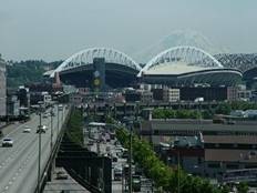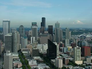 Aber dann waren es auch nur noch 60 Minuten und wir konnten die Skyline von Seattle sehen. Schon irgendwie beeindruckend – man fährt den 5-spurigen Interstate 5 entlang, rechts von einem sieht man die Space Needle und Downtown, links liegt Bellevue. Zum Glück hat sich der Stau schon gelegt, so konnten wir unkomplizierter fahren und sind nach einigen Kilometern schon in die Schluchten der Hochhäuser abgetaucht. Dabei gab es dann die erste Stadtrundfahrt für Sabrina…