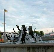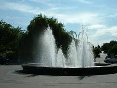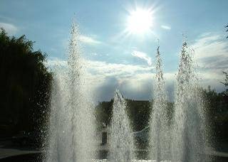 Leider wurde Sabrina irgendwann übel – vermutlich, weil sich der Turm im Wind bewegte oder so was. Nach einem halben Liter Wasser und einer Fahrstuhlfahrt ging es dann aber schon wieder viel besser – fester Boden unter den Füßente soll nicht unterschätzt werden. Unten hatten wir noch einen super Blick auf einen schönen Brunnen, der von den restlichen Sonnenstrahlen beleuchtet wurde, die durch die dicke Wolkendecke durchgestoßen sind.