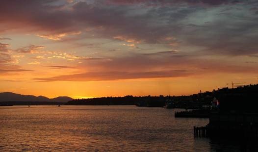 Aber irgendwie hat mich das Essen doch ein wenig fertig gemacht und ich wollte noch unbedingt einen Kaffee trinken. Also sind wir in Richtung Tully’s gegangen, da wo ich bislang jedes Mal war, wenn ich Seattle besucht habe. Der Kaffe war auch nicht so teuer, genauso lecker und wesentlich günstiger als der im S. Und vor allem – ich hatte das Ding nach 2 Minuten! Somit sind wir wieder zurück zum Park und haben die Aussicht auf Mt. Reiner, die Stadt und den Hafen genossen.