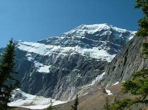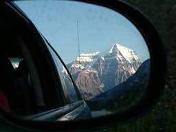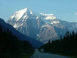 Dies ist der größte Berg in den Kanadischen Rocky Mountains, mit einer Höhe von 3954m. Der Berg ist einfach nur beeindruckend – ein 4.000er mit 3-3,5 Tausendern drum rum. Das sah mal wirklich majestätisch aus. Vielleicht war es auch die Tatsache, dass dies der einzige Berg war, auf den die Sonne noch geschienen ist, auf dem noch Schnee lag und der somit in Mitten der anderen dunklen Berge einfach nur geleuchtet hat. Im Vordergrund dann noch der Highway mit eigentlich riesigen Trucks, die aber wie Spielzeugautos aussahen, im Vergleich zu diesem Berg! Und das schöne war – wir konnten ihn die ganze Zeit den Highway entlang noch im Rückspiegel beobachten!