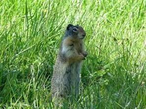 Irgendwann kam dann noch einmal einer meiner scheuen Freunde – eine Columbian Ground Squirrel. Unsere Freundschaft hat genau so lange gedauert, bis er an meinem Fuß gerochen hat. Danach hab ich ihm den Spitznamen „Speedy“ gegeben, denn so ein schnelles Squirrel hab ich noch nicht gesehen. Irgendwie mochte er meinen Fuß-Geruch wohl nicht.