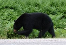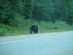 am Straßenrand am Horizont entdeckt haben. Wir sind immer näher gekommen und haben gesehen, dass sich dieses Ding bewegt. Irgendwann war klar, das war ein Schwarzbär! Sehr cool – hier haben wir die ganzen Tage drauf gewartet – und nichts gesehen bzw. zum Glück auch keinem Bären in der Natur begegnet. Und auf einmal läuft so ein Bär auf der gegenüber liegenden Straßenseite im Graben entlang.
