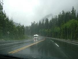 Irgendwie hatten auch noch alle Sea-Food-Restaurants geschlossen, so dass wir wieder zurück zum Ausgangspunkt unserer Expedition sind. Es war immer noch in Strömen am regnen – und an der nächsten Ecke war ein Out-Door Einkleidungs-Center. Dort haben wir dann zwei nette Regenjacken gefunden, waren uns aber noch nicht sicher, ob wir diese nehmen sollten oder nicht. Prinzipiell brauchten wir ja beide welche – in Deutschland hatten wir auch keine – und ich hatte mir sogar zu Hause sogar schon überlegt, mir so was zuzulegen. Die Verkäuferin hat uns auf die Frage hin, ob es in Kanada immer so regnet, netterweise noch eine kleine Denkaufgabe mitgegeben: „Warum ist es in Kanada so schön grün?“