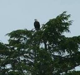 Nachdem Sabrina dann noch einmal die Reling gegrüßt hat, haben wir uns irgendwann endgültig auf den Heimweg gemacht. Diesmal ging es eher durch die Fjorde zum Inland hin gelegen. Da war das Wasser sehr ruhig und hat schöne Blicke auf die Küste ermöglicht. Kurz vor Tofino haben wir noch einen kleinen Zwischenstopp eingelegt, um das Nest von unserem Seeadler vom Anfang der Tour zu beschauen. Skipper erklärte, dass solche Seeadler sich einmal kennen lernen und nachdem die ersten Kleinen gekommen sind, für ihr Leben zusammen bleiben (und oft auch im gleichen Nest hausen).