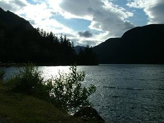 5 Min. später waren wir dann wieder am Auto, haben unsere Sachen abgegeben und uns erst einmal ausgeruht. D. h. Sabrina hat käseweiß im Auto neben mir gepennt und ich hab mich um „administrative“ Sachen unserer Reise gekümmert. Nach ca. einer Stunde sind wir dann aufgebrochen in Richtung Victoria. Uns war klar, dass wir niemals so weit kommen würden – aber zumindest den Pacific Rim Highway und das Regenloch Tofino wollten wir hinter uns bringen und wieder in die Nähe von Parksville kommen. Auf dem Weg lag noch ein kleiner Netter See, an dem „wir“ uns „erleichtert“ und danach frohen Mutes den Blick auf den Sonnenuntergang genossen haben.
