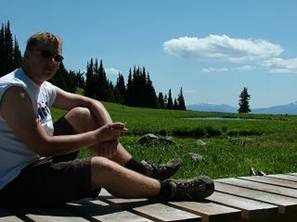 Gegen 10h sind wir dann endlich in den Well’s Gray Park aufgebrochen, zuerst zum Green Mountain Tower, ein kleiner Aussichtsturm mitten im Park. Die Aussicht hat uns allerdings nicht wirklich vom Hocker gehauen, weil wir halt nur auf den grünen Park, sprich Wald und Felder, geguckt haben, so ähnlich muss es im Schwarzwald ausschauen. Im Hintergrund waren aber schon einige schneebedeckte Berge zu sehen, die haben wir wohl auch gestern beim Kanufahren gesichtet. Wir sind wohl zu sehr von den bisherigen Landschaftsbilder in den Nationalparks von Banff verwöhnt….