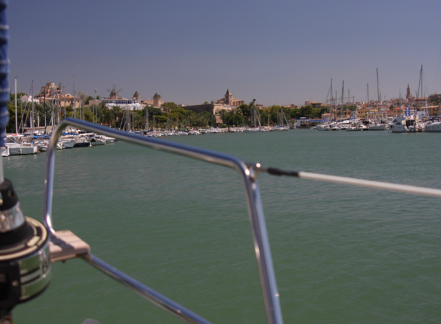 7.50h morgens in Palma. Manch einer in ca. 10km Entfernung kommt gerade erst heim, wir stehen auf. Die Nacht war kurz. Nach dem Feierabend-Bierchen gestern sind wir erst um kurz vor drei ins Bett. Na, das kann ja was geben. Frühstück im Hotel ist auf 8h angesetzt, wir sind die ersten. Es füllt sich langsam und gegen viertel nach neun trifft auch der Rest der Crew ein… Frühstück ist einigermaßen akzeptabel – bis auf das eher grünlich gefärbte Rührei… Um 9.30h stehen wir dann aufbruch bereit in der Rezeption und ordern ein Taxi.