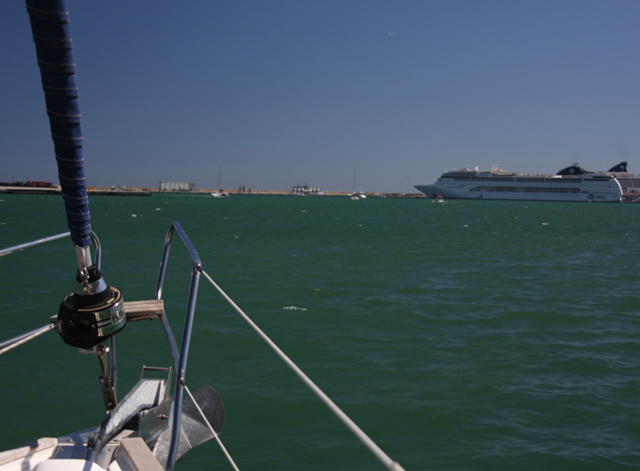 Um ca. 15.30h sind wir dann mit der Sicherheits-Einweisung durch und Sebi gibt Kommando zum Ablegen. Dabei vergisst er leider, das Bugstrahlruder zu fragen, ob es klar ist. Ich sehe nur, wie er wild auf den Tasten rum drückt, es sich aber nichts tut. War halt noch nicht "klar", das Ruder… So what, dank seiner guten Erfahrung passiert nicht mehr. Wir nehmen nur eine Bojie mit und drehen aus dem seichten Wasser in Richtung Hafen-Ausfahrt.