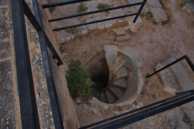 Die hohe Luftfeuchtigkeit macht mich fertig. Es sind bestimmt 95% oder mehr – insofern das überhaupt geht. Mit Stolz stelle ich fest, dass nicht nur ich am Ende bin. Auch Stefan, Marion und Maaf sind schön fertig. Der Weg zur Burg ist steil und mit viel Geröll. Oben angekommen dann zuerst ein Schock. Das Tor ist dicht. Verdammt. Ich kann aber noch eine kleine Öffnung in der Wand entdecken. Pionierhaft stürme ich vor. Nach bereits 3m wird es dunkel. Sehr dunkel. Ich will schon aufgeben, denn es geht anscheinend echt nicht weiter. Nach ein paar Sekunden gewöhnen sich die Augen an die Dunkelheit und ich entdecke weitere Stufen. Das ist so eng, dass ich kaum mit dem Rucksack da durch komme…