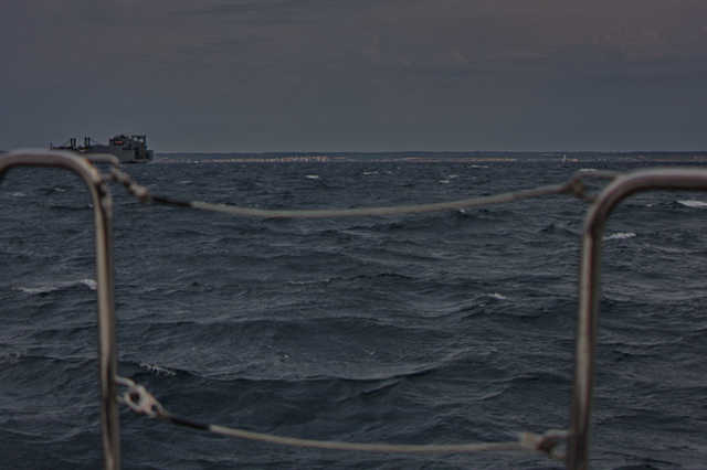 Franzi macht einen richtig guten Job am Steuer. Dennoch, gegen einige Wellen ist sie einfach machtlos. Die Chinook tanzt in den Wellen. Der Masten schwankt ganz schön. Wir kontrollieren noch einmal die Life-Belts – unsere Lebensversicherung. Das Segel flattert im Wind. Es schlägt teilweise von Back- auf Steuerbord und anders herum. Es ist verdammt laut.