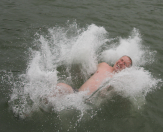 Nun, wo das klar ist, gibt es nur noch eins zu tun. Skipper-Taufe 🙂 Wir schnappen uns unseren "Schgibba Schwebi", platzieren ihn am Hafen-Becken und … stoßen zu! Ich muss sagen, ganz schön ekelig, so ein Hafen-Becken. Was sagt Hannes dazu: "Selbst Schuld, wenn Du Dir Palma als Skipper-Tauf-Hafen aussuchst!" Und was sagt die Pöbel-Crew dazu? "Eh Schwebi, mach doch mal die Fischreste aus Deinen Haaren!"