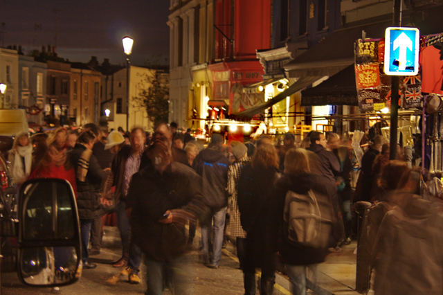 Letztendlich landen wir in der Portobello Street. Wahrscheinlich die bekannteste Straße in ganz Notting Hill. Eeeeewig lang, und die ganze Straße ein riesiger Markt. Überall kleine Mini-Geschäfte, Restaurants, Bars, Stände, Menschen, Menschen, Menschen und noch einmal Menschen.