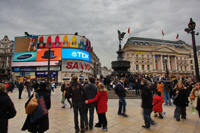 Eine Stunde zurück. 14 Uhr. Wir sind am Piccadily Circus. Timo ruft an. Dort sind wir eigentlich verabredet. Er meint, dass wir uns lieber direkt in einem Cafe in der Nähe treffen. Der Andrang ist gerade enorm. Caro und er sitzen da schon und halten einen Platz frei. Fein – wir machen uns auf den Weg. Für die 250m zu Fuß benötigen wir ca. 10 Minuten. Nein, nicht weil wir uns schon die Füße platt gelaufen haben, sondern weil Stau ist. Auf dem Fußgängerweg. Nix geht mehr. Ausweichen auf die Straße auch keine Option. Diese Busse sind wirklich fies. Und kommen von hinten. Mit gefühlten 70 km/h. London, SA Nachmittag in der Innenstadt. So ist das wohl. Ich werd nie wieder über München schimpfen.