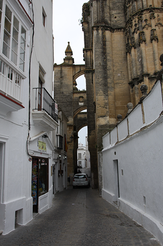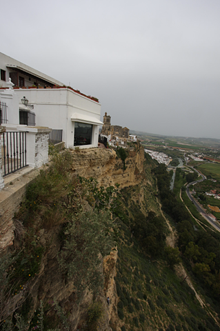 Es regnet. Beach Club im Hotel Playa de la Luz fällt somit aus und ein Alternativ-Programm muss her. Im Lonely Planet finden ist das Dort Arcos de la Frontera – und fahren los. Arcos liegt direkt hinter Jerez de la Frontera, ca. 40 km von Rota, unserem Hotel entfernt. Es ist ein schönes, kleines, weißes Dorf, dass auf einen Felskante gebaut wurde und schon von weitem zu erkennen ist. Damals war dies durchaus von strategischer Bedeutung, als eine der zentral umkämpften Gebiete während der zahlreichen Eroberungen und Feldzüge.