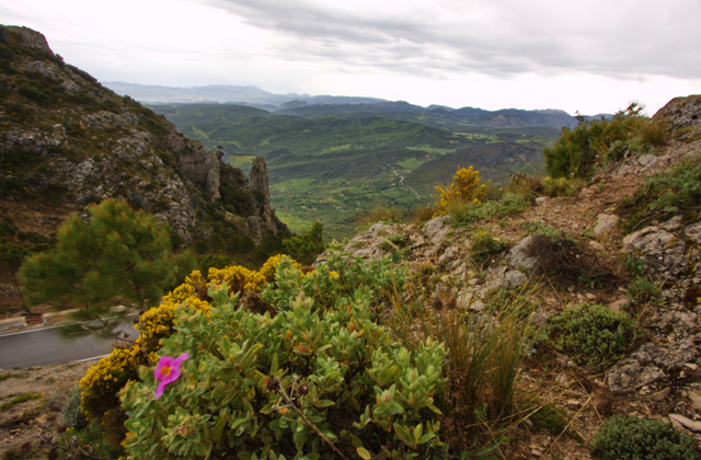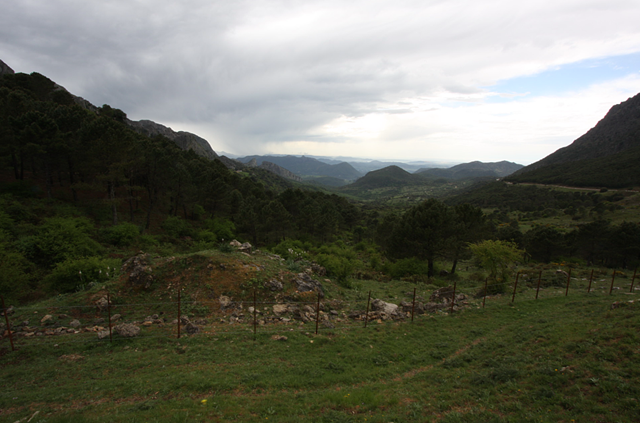 Kurz vor dem Ort biegen wir ab in Richtung Zahara. Dies ist eine Stichstraße, die uns über den Passo de las Palomas führt. Eine Bergstraße in einer Höhe von 1.357m über dem Meeresspiegel. Von dort aus haben wir einen phänomenalen Blick über die beiden Täler, rechts und links vom Pass. Irgendwie erinnert mich diese Szenerie an Schottland. Die saftig grünen Wälder und Berge, die gelb blühenden Pflanzen im Vordergrund. Traumhaft!