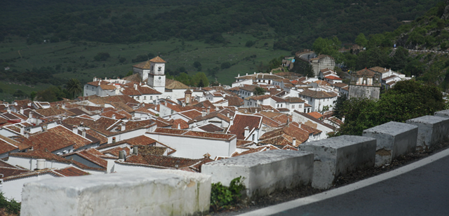 Der weitere Weg führt uns über Ubrique, einer kleinen Stadt mit mehreren tausend Einwohnern. Und danach folgen sage und schreibe vierzig Kilometer kurvenreiche Straße bis nach Alcalá de Los Gazules. Der Weg führt stetig bergab, erst durch Nadelwälder, später fast ausschließlich durch Laubwälder.