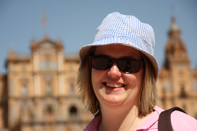 Im Park ‘Maria Luisa’ haben wir mehr Glück. Dies ist einer der wenigen Plätze, die wir in den letzten Tagen besucht haben, die wirklich ruhig sind. Nur die Hufen von Pferden im Hintergrund dringen in unsere Ohren. Wir setzen unsere Entspannungsphase fort und genießen die Ruhe. Wir diskutieren über die Pferde und stellen fest, dass man hier, am Plaza Espana mit einer Kutsche losfahren kann. Die Entscheidung fällt nach den bislang zurückgelegten Kilometern nicht schwer – und wir sitzen in der Kutsche.