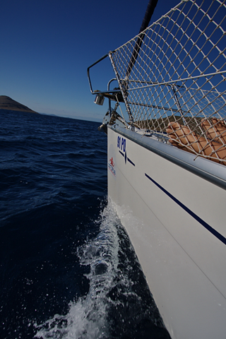Wir fahren weiter und setzen Kurs auf die Kornaten. Ein wenig später heißt es dann: „Klar zum setzen der Segel?“ Das Vorsegel, die Fock, ist heute völlig ausreichend. Sie bringt uns auf eine Geschwindigkeit von ca. 3.5-4.0 Knoten. Sebi stellt den Motor ab und wir genießen die Ruhe…