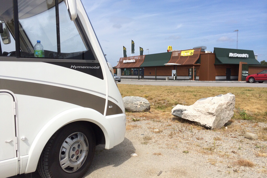 Unfassbar, aber wahr. Ben Luis schläft schon seit 90 Minuten. Vorher hab ich ihn noch 30 Minuten bespaßt. Und jetzt sind wir bereits hinter Oslo und kurz vor Schweden. Jetzt ist Kleini gerade wach geworden und hat Hunger. Da ist er auch nicht alleine. Sabrina steuert das nächst beste „Restaurant“ ihrer Wahl an. Es gab kein Halten mehr. Es musste dieses eine, spezielle Restaurant sein. Ich formulier’s mal so: wir verabschieden uns aus Norwegen mit einem totaaaal typischen, lokalen Gericht: 9er Chicken McNuggets und ein Double BigMac.